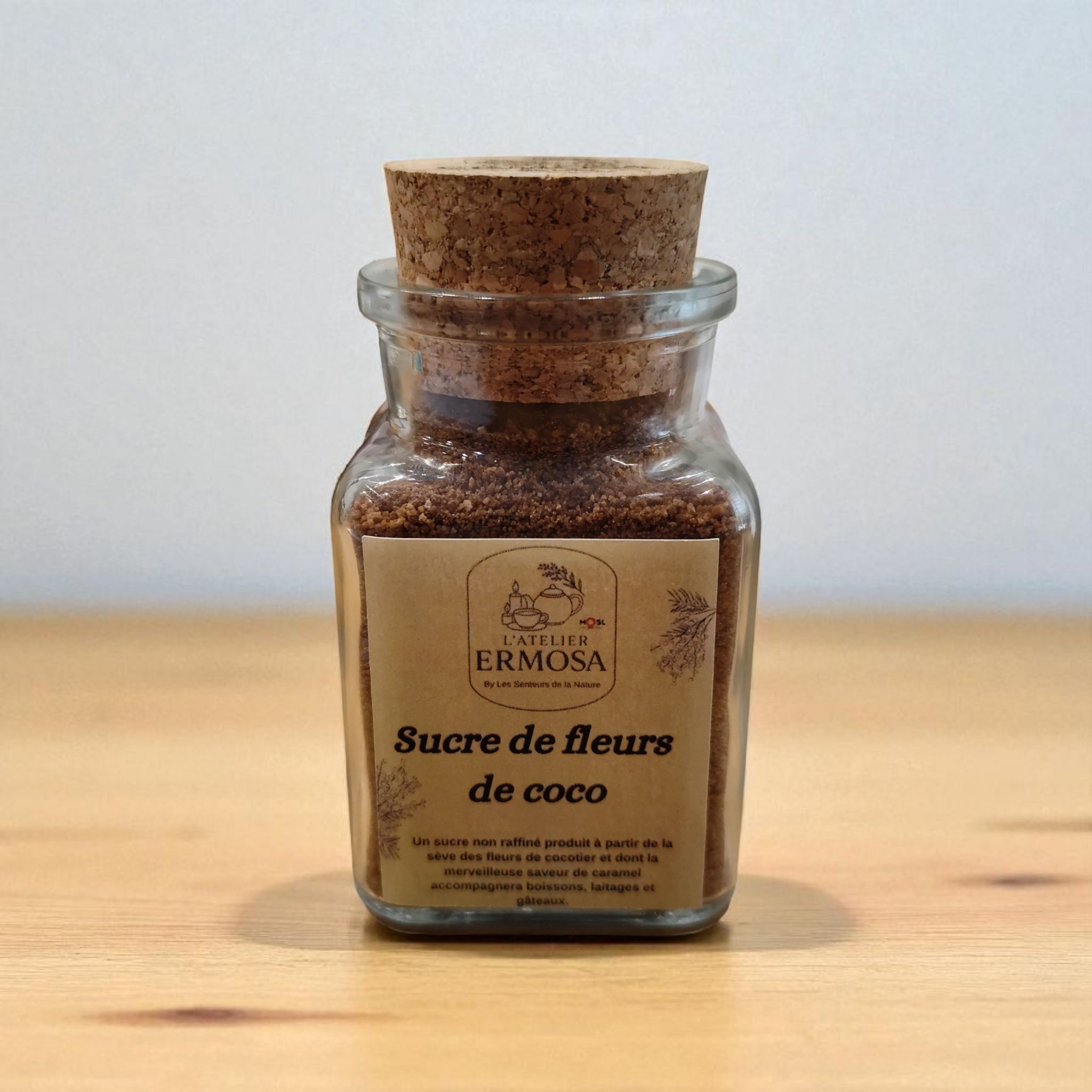Les bienfaits du sucre de fleurs de cocotier pot en verre et liège de 80g