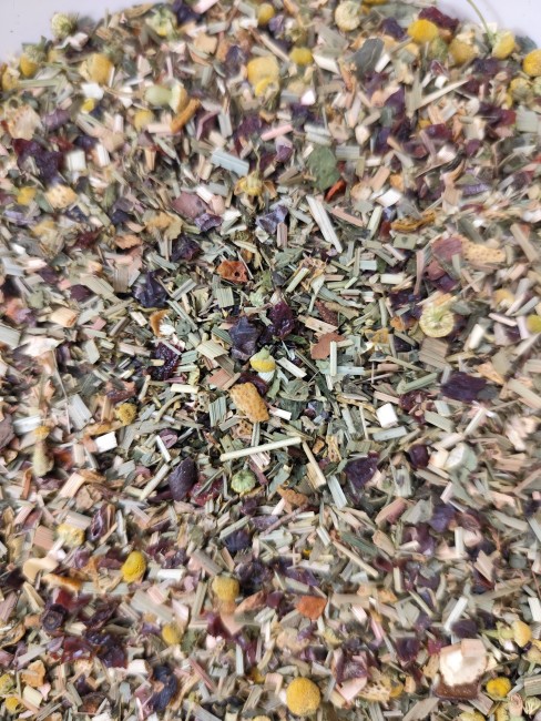 Composition : Citronnelle, camomille matricaire, Cynorrhodon fruit, Mélisse, romarin, grué de cacao, écorce d'orange, arômes naturels.