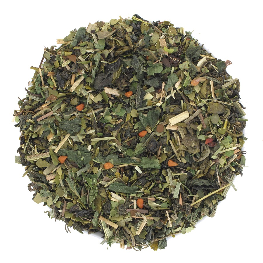 Thé vert, maté vert, maté torréfié, ortie piquante, citronnelle, graines de cynorrhodon, arôme naturel de citron.