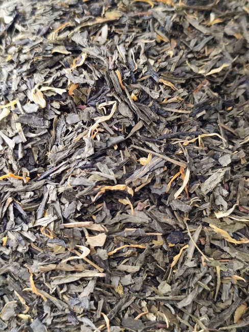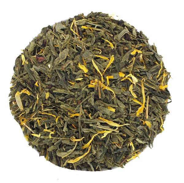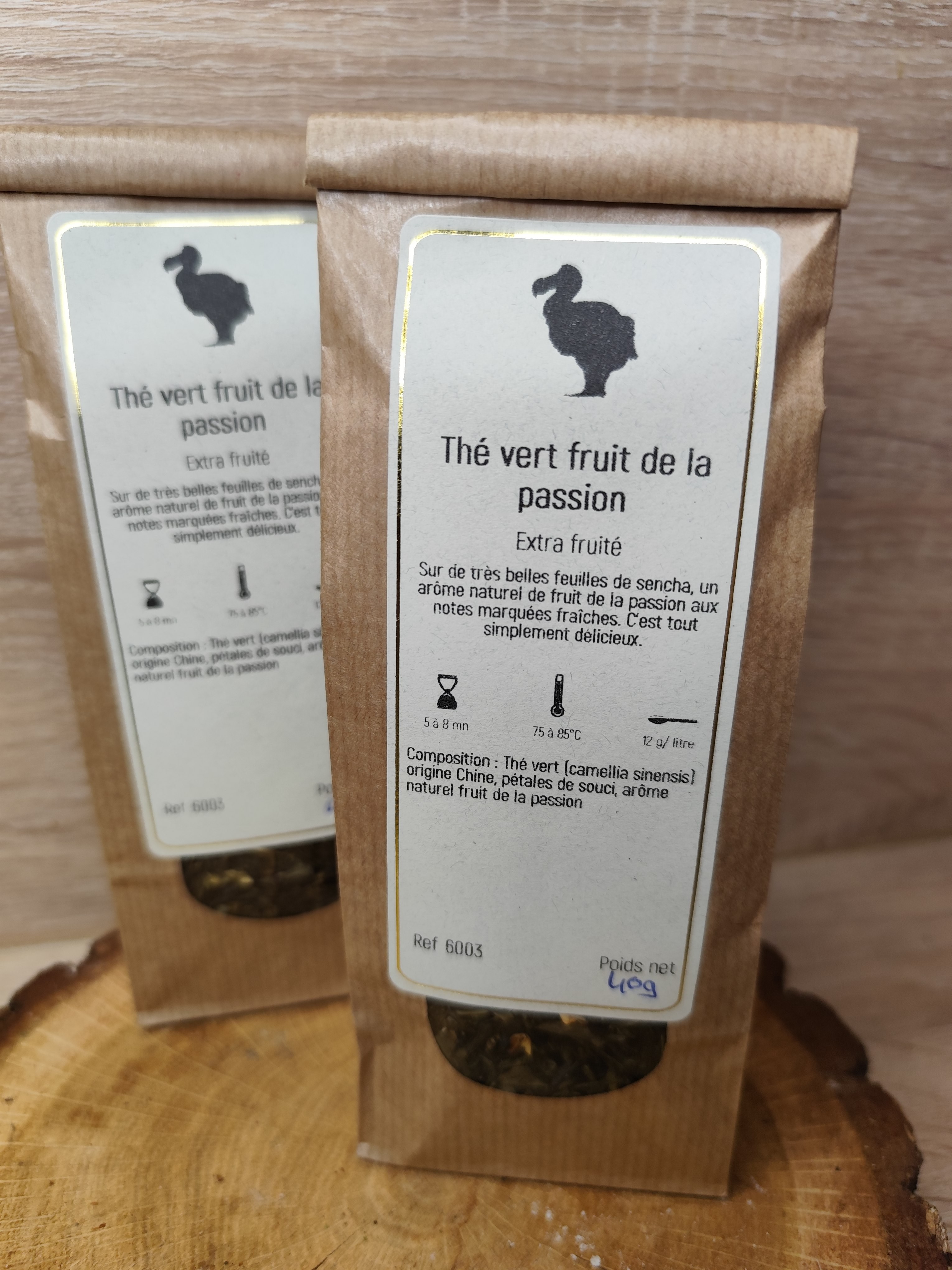 Composition : Thé vert (camellia sinensis) origine Chine, pétales de souci, arôme naturel fruit de la passion
