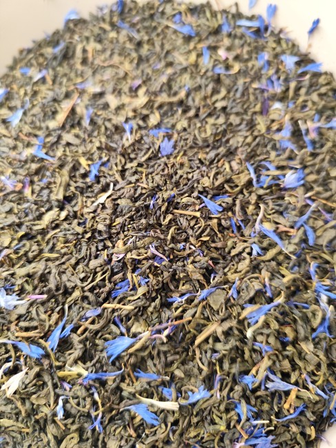 Thé vert, arôme, pétales de bleuet.