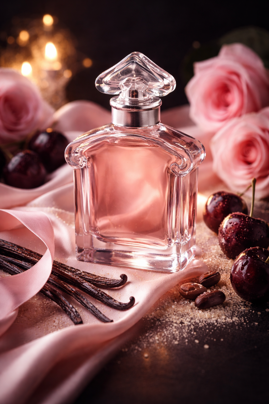 Dès l’ouverture, les notes de tête dévoilent une explosion fruitée et lumineuse mêlant griotte, amande, fruits rouges et bergamote, apportant fraîcheur et gourmandise. Le cœur révèle une composition élégante et originale où la réglisse s’entrelace avec la rose, le thé et la rose de Taïf, offrant une signature florale subtilement épicée. En fond, la fragrance s’enveloppe de vanille, de fève tonka, d’anis, de patchouli et d’iris, laissant un sillage profond, doux et terriblement envoûtant.