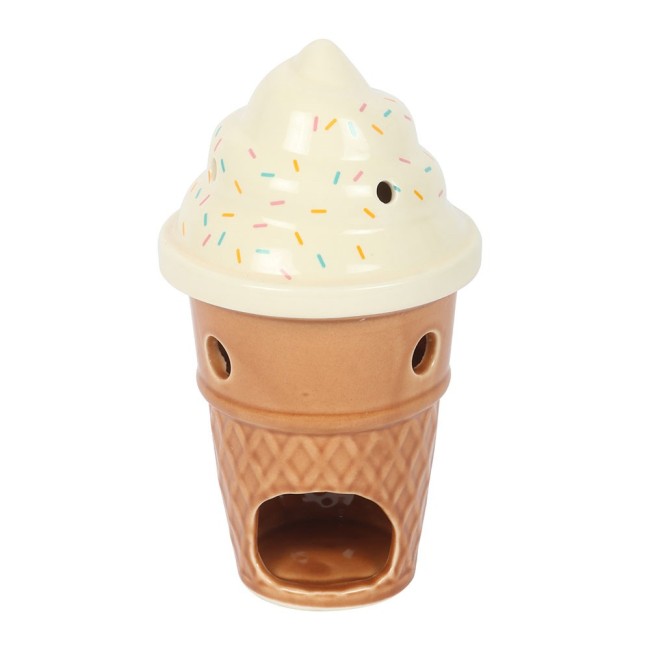 Embellissez votre intérieur avec ce brûleur en céramique en forme de cornet de glace gourmand, orné d'un couvercle à effet tourbillon pour une touche de charme supplémentaire. ce modèle fantaisiste est parfait pour apporter une note marine à votre décoration. N'utilisez pas plus d'une bougie chauffe-plat et retirez le couvercle avant utilisation. Ne laissez jamais une bougie allumée sans surveillance. 17 cm x 9,5 cm x 9,5 cm